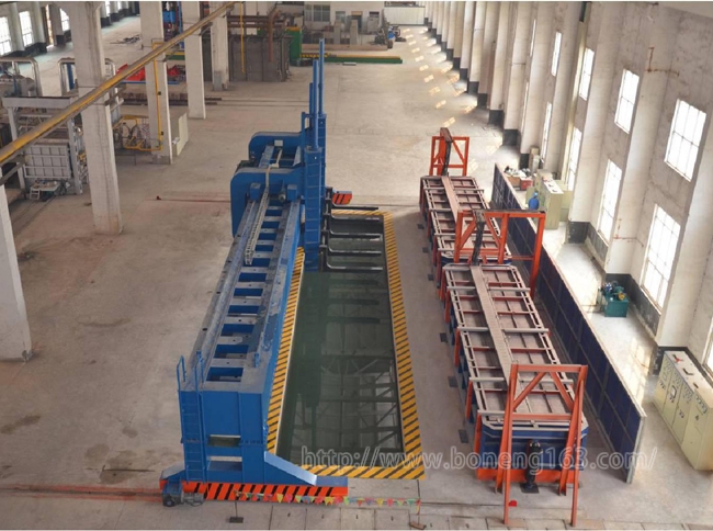 由我廠研發的自動化調質生產線由:加熱爐,回火爐、熱處理機器人、淬火水槽、轉移料臺、正火風冷臺、工裝輔助及控制系統組成。